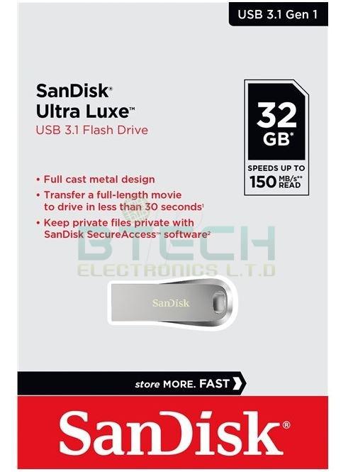 דיסק און קיי מתכת SanDisk 32GB Ultra Luxe USB 3.1 Type-A